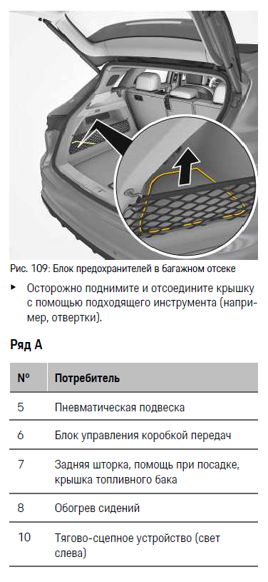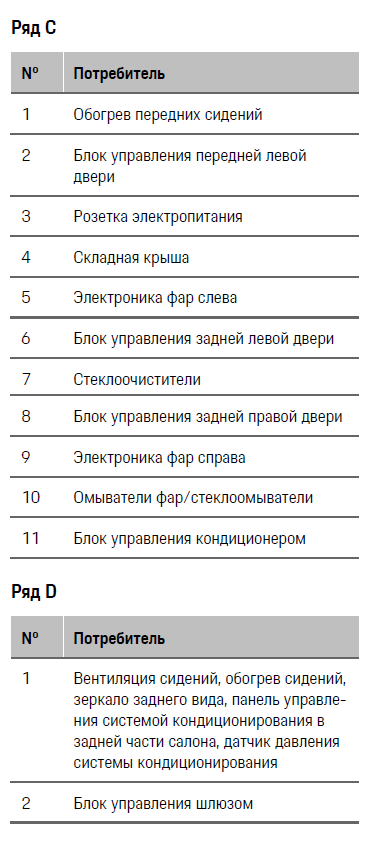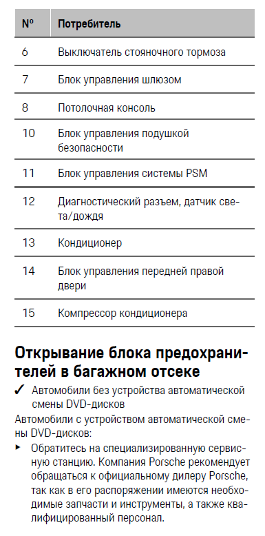 Кроме того, используется новый тип предохранителей Maxifuse квадратной узкой формы, которые теперь называются малыми предохранителями. (Фото справа.) Также в Porsche устанавливается монолитный автоматический выключатель. Этот выключатель срабатывает аналогично предохранителям при токе перегрузки в цепи. В отличие от обычного предохранителя, который автоматически не восстанавливается и повторно не используется, выключатель автоматически восстанавливает исходное состояние после разъединения цепи. Таким образом, предохранители заменять больше не требуется. Автоматический выключатель — это электрический компонент, представляющий собой резистор с положительным температурным коэффициентом на полимерной основе с нелинейной кривой сопротивления при высоком электрическом токе, например при коротком замыкании, нагревается и, соответственно, становится высокоомным. После охлаждения сопротивление снова становится низкоомным, как в предохранителях с автоматическим повторным включением.