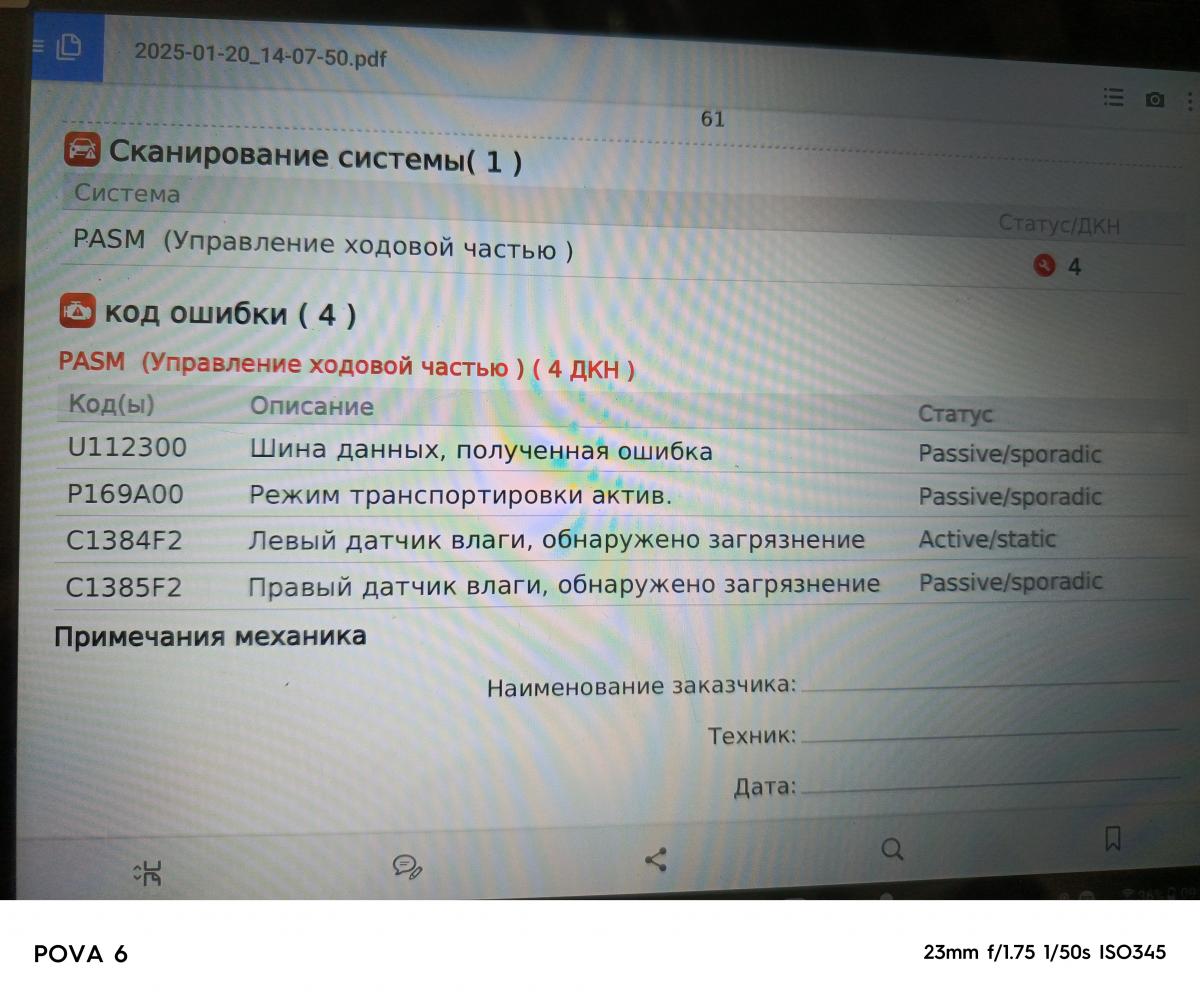 По ошибкам имеем C1384 f2 , расшифровывается как -Левый датчик влаги, обнаружено загрязнение.
