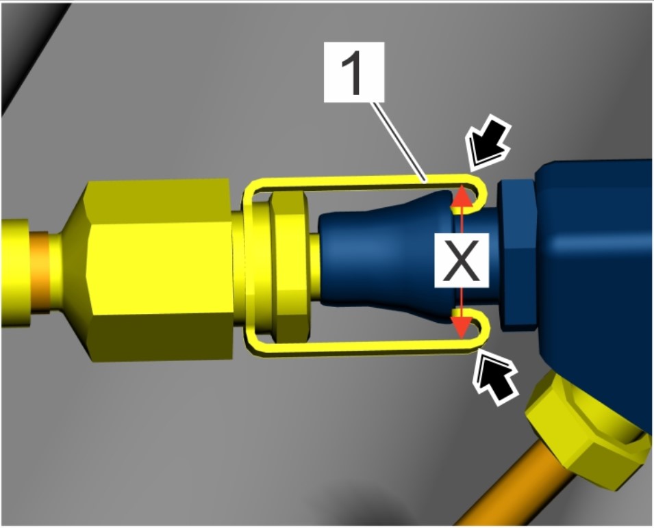 Выполнить аварийное опорожнение с помощью аварийного спускного клапана на насосе/компрессоре -1- (при наличии).