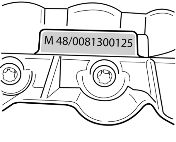 Номер двигателя находится на нижней части блока цилиндров со стороны 5-8 цилиндров. После демонтажа нижнего защитного кожуха номер двигателя виден слева.