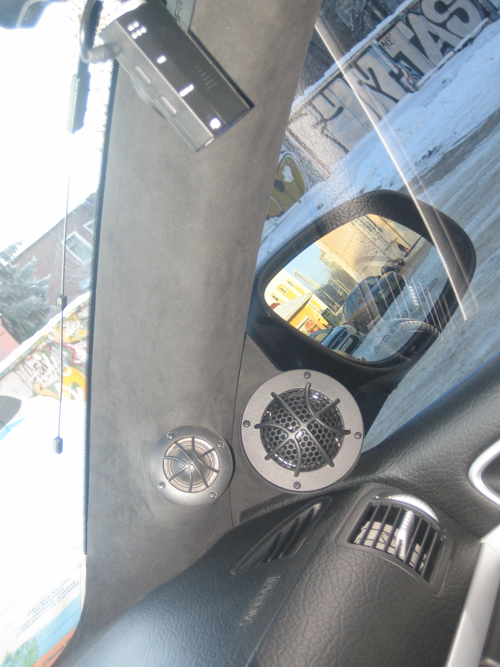 Так же было принято решение поменять родной PCM с CD чейнджером, дополнительно были установлены DVD чейнджер и TV тюнер, но пользоваться ими было не очень удобно – ведь чтобы включить TV или DVD было необходимо, используя различные «лентяйки» совершить, ряд нехитрых, но неудобных операций – особенно в движении! А уж о качестве звука и изображения с этих дивайсов вообще лучше промолчать. И тогда было принято решение подогнать мультимедийную составляющую авто под себя, для чего было приобретено: Pioneer AVIC – HD3II NAVI HDD, TV тюнер Pioneer, TV антенны Pioneer, USB адаптер Pioneer, адаптер д/ кнопок на руле, Потолочный DVD NRG, 3-х компонентные колонки DLS вперед, 2-х компонентные колонки DLS назад, и 3 Усилитиля DLS – на передние колонки – на задние колонки- на САБ, САБ Alpine с возможностью регулирования уровня Басов на центральной панели. Заодно поставил Камеру заднего вида Pleervox (кнопка открывания багажника). Машину отдал в Студию звука – вернули мне её через 2 недели – за это время сделали полную шумоизоляцию – пол, потолок, двери, крылья и все, что только было можно. Изготовили корпус СабА, которому определили место в левом заднем крыле, и изготовили место под усилители и конденсатор! Место под установку головного устройства и часть центральной консоли обтянули пленкой ВинилЛ 3D Carbone. Еще изготовили подиумы под переднею акустику – обтянули их Алькантарой, регулировку зеркал перенесли на левый подлокотник! До кучи установил в багажнике преобразователь напряжения 12-220 Вольт, Поставил Видеорегистратор на лобовое стекло и антирадар – все питание подвели скрыто в момент установки акустики – выглядит супер!