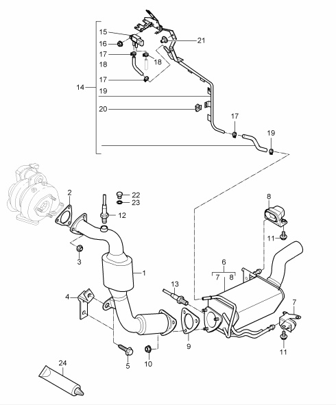 3. Снимите левый соединительный шланг -2- к сажевому фильтру на датчике дифференциального давления -1- .