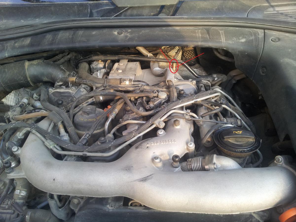 4. Выверните крепежную гайку -стрелка- и выньте датчик дифференциального давления -1- .
