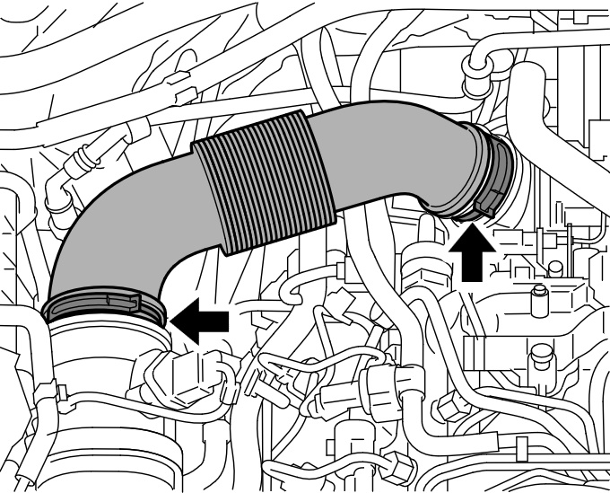 1. Снимите шланг воздуховода -стрелки- .