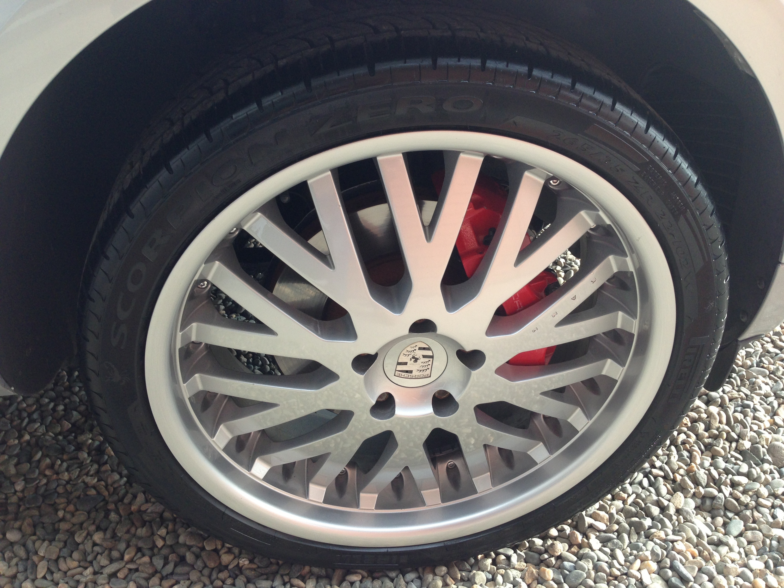 Продам оригинальные диски KAHN с резинои пирели скорпион зиро 265 35 22 протектор 6.5-7мм.ценник 85000р. Или обменяю на диски техарт r 20