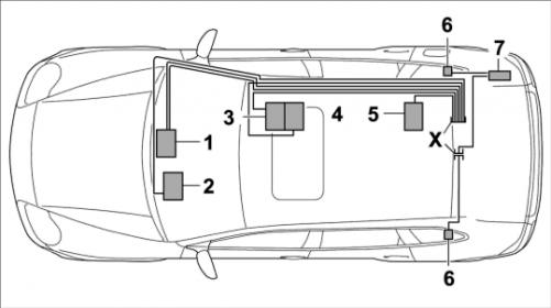 Antennenleitungen im Innenraum bis Trennstelle einbauen- (PCM/Radio, Steuergerät Kessy, Steuergerät Telefon und Navigationseinheit, TV, Empfangsteil für Digitales Radio, Heckspoiler rechts und links)