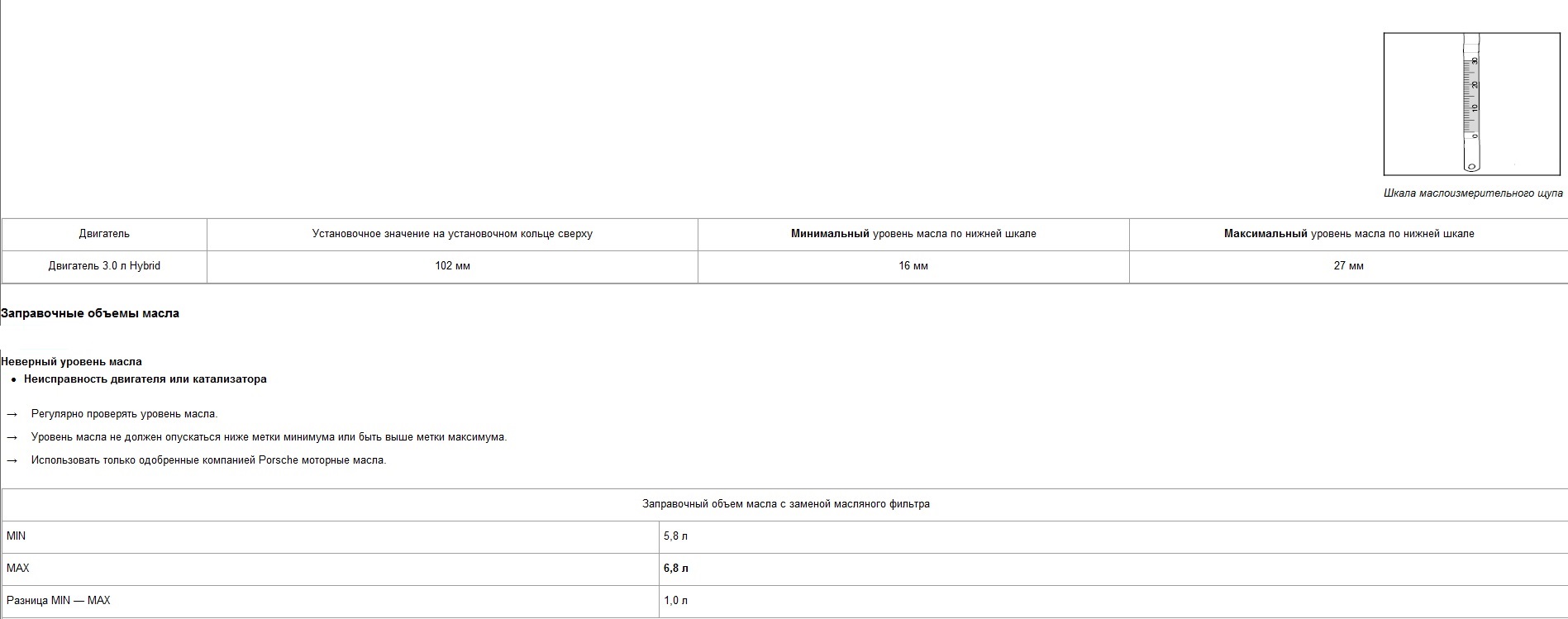 → Использовать только одобренные компанией Porsche моторные масла.