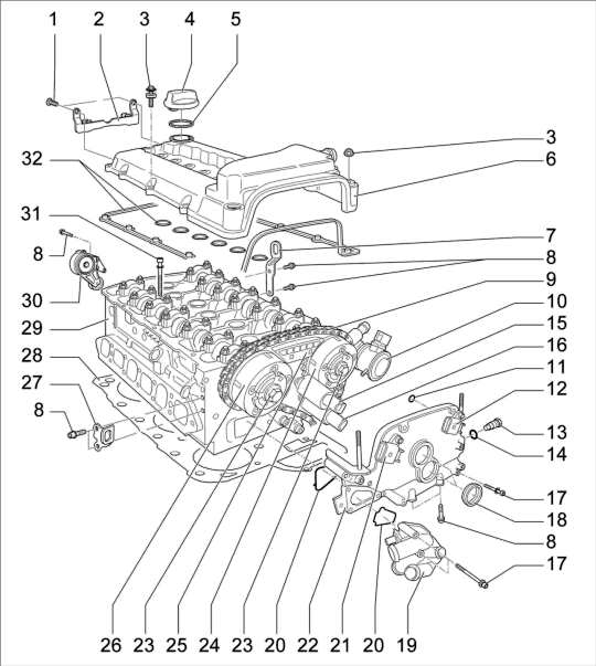 -32- - Прокладки крышек ГБЦ; учитывать монтажное положение; проверить и при необходимости заменить