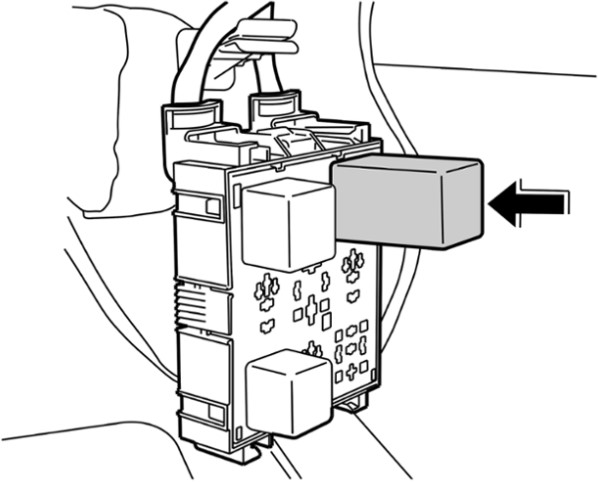 2 Вынуть блок управления из держателя реле -стрелка-.
