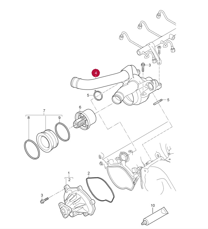 Сижу, смотрю на схему и понять не могу. Может объяснил не правильно. Я имел ввиду про патрубок аллюминевый системы охлаждения который непосредственно идёт на вход в блок двигателя а другой патрубок(который остался на месте в блоке двигателя) идёт на выход из двигателя.