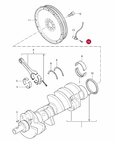 6 - Винт крепления импульсного датчика коленвала M6 → Момент затяжки: 10 Nm