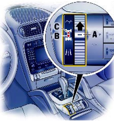 Регулятор A находится на центральной консоли автомобиля. Регулятор снабжен многоступенчатой функцией и может переключаться в обоих
