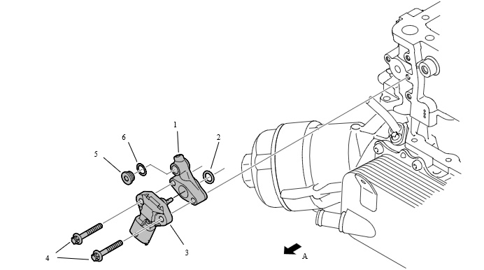 3. Демонтировать датчик давления масла с помощью адаптера -3 и 1- . Для этого демонтировать винты -4- и снять компоненты. Заменить уплотнительные кольца.