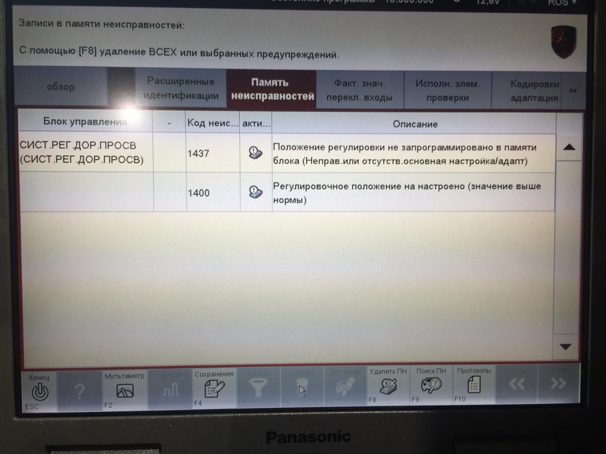 при регулировки пневмы Кайен 2003 г.в. выходят таки е ошибки
