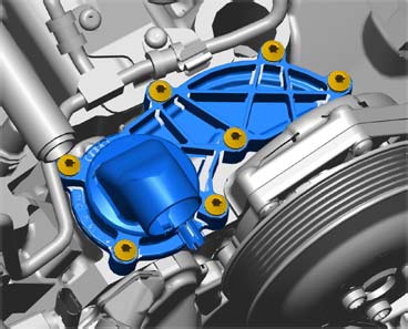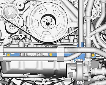 11.1 Очистить поверхности уплотнения для передней трубки ОЖ на двигателе.