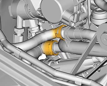 Для этого разблокировать крепежную скобу на шланге ОЖ и отсоединить шланг ОЖ от трубки ОЖ Затем вернуть крепежную скобу на место.