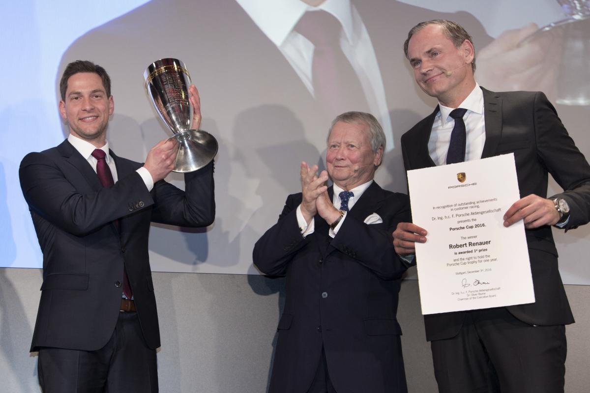 Кубок Porsche Cup, награда, которую получает самый успешный в мире частный пилот Porsche, уходит в этом году гонщику из Германии. Роберт Ренауэр (31 год) принял этот традиционный кубок из рук д-ра Вольфганга Порше, председателя наблюдательного совета Porsche AG. Дополнительно Ренауэр получает Porsche 911 стоимостью 120 000 евро. Благодаря своим успешным выступлениям в ADAC GT Masters, Европейской серии Ле-Ман и серии 24-Hour International Endurance за рулем разных гоночных автомобилей Porsche он набрал в прошедшем сезоне 7355 очков. Занявший второе место немец Кристиан Рид получает призовые в размере 30 000 евро, Даниэль Диас Варела из Испании, ставший третьим, получает 25 000 евро. Кубок Porsche Cup разыгрывается с 1970 года и основывается на идее Ферри Порше.