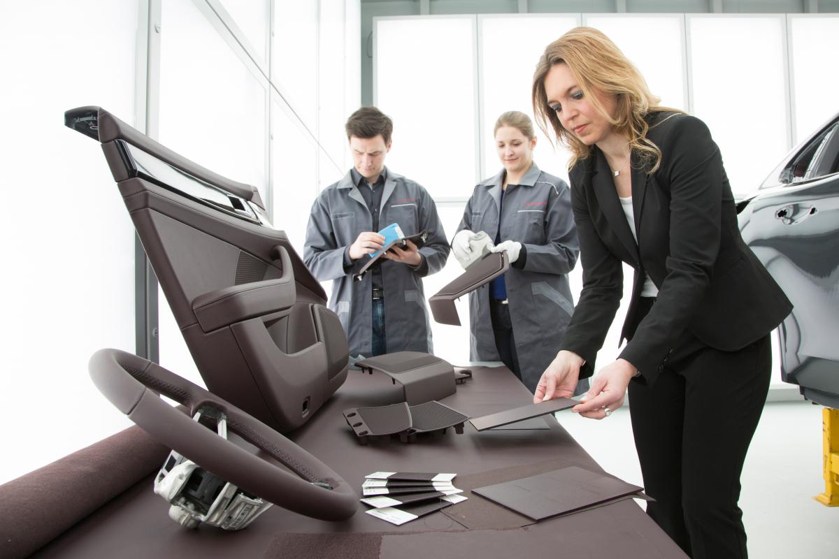 Перед запуском в серийное производство нового цвета интерьера проводятся четыре так называемых «экзамена» цвета. При этом все 600 находящихся на виду компонентов оснащения монтируются в неотделанный кузов. В ходе этого прямого сопоставления компонентов выявляются все визуальные различия. Отклонения замеряются при помощи спектрофотометра. Например, может случиться, что рассматриваемый цвет Marsala имеет правильное количество красного, но чуть больше синего, и он несколько темнее. Дополнительно рефлектометром замеряется блеск поверхности. Зафиксированные измерительной техникой значения корректируются при необходимости. При следующем «экзамене» проверка повторяется вновь: в идеальном случае цветовой оттенок к этому времени уже получен или, по крайней мере, намного ближе к поставленной цели. При измерении цвета спектральный коэффициент отражения определяется на основании стандартизированной цветовой системы. При этом каждый цветовой оттенок однозначно определяется через трехмерную сферическую модель.