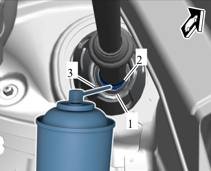 дополнительно обработать вал рулевого управления / пластиковое уплотнительное кольцо в моторном отсеке термостойким антифрикционным спреем.