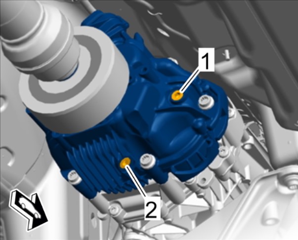 1.3 Заменить резьбовую пробку маслосливного отверстия -2- и затянуть с предписанным моментом затяжки.