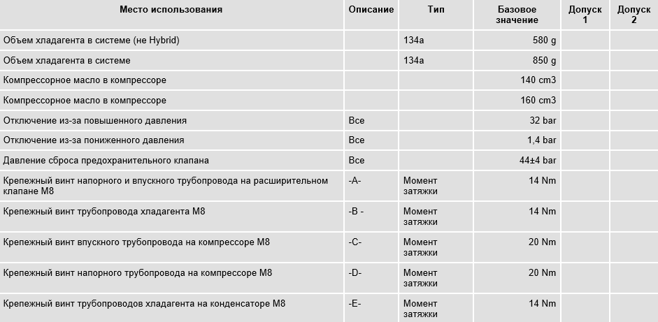 Объем хладагента в системе (не Hybrid): → 134a: 580 g