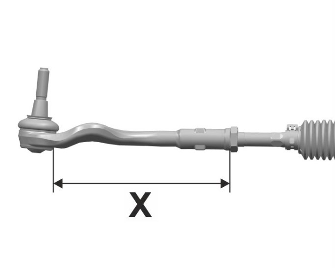 Если контрольный размер -x- составляет< 188 мм(замерено до закатанного края на конце наконечника рулевой тяги), следует заменить весь рулевой механизм вместе с рулевой тягой и наконечником рулевой тяги.
