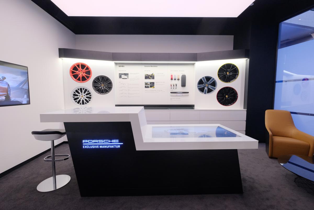 Новая площадка в самом центре Гуанчжоу призвана помочь Porsche усилить свое присутствие в непосредственной среде проживания своих клиентов. Одной из ключевых особенностей нового шоурума площадью 460 квадратных метров является зона презентации новых автомобилей. Все пять модельных линеек производителя спорткаров могут быть визуализированы и представлены в предпочитаемом клиентом цвете при помощи планшетов iPad и многочисленных масштабных моделей, основанных на оригинальных глиняных прототипах из дизайн-студии Porsche.