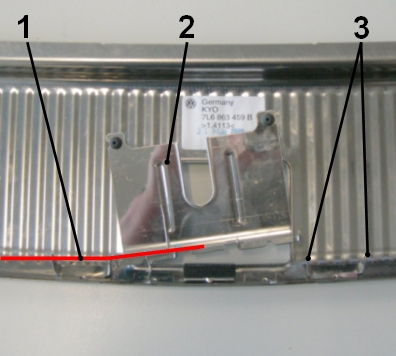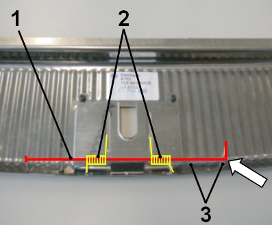 • Завести проволочную опору (1) через обе пружины (2) в направляющую (3).