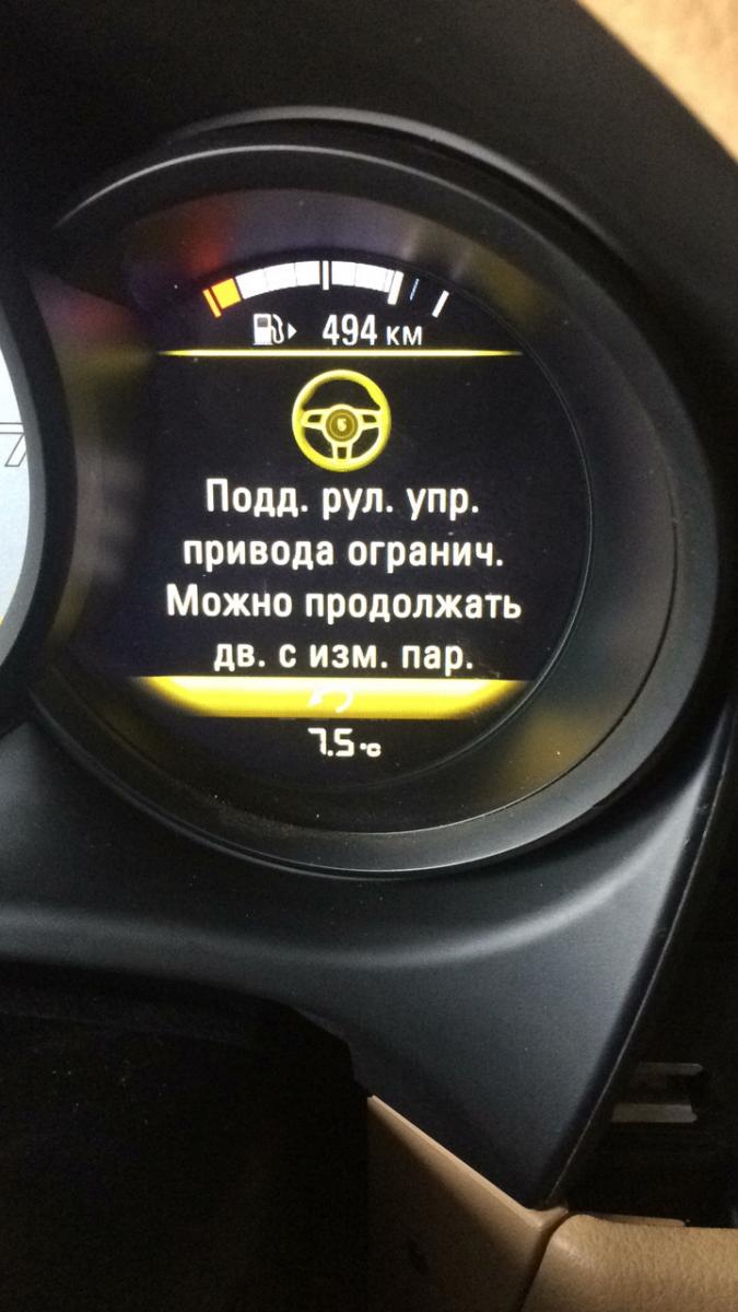 Ошибок нет, только в панели проборов сообщение, руль при этом тугой.