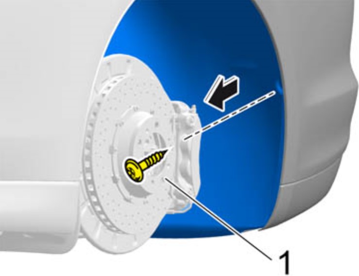 3. Вывернуть винт -1- на подкрылке.