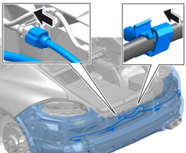 Вложить жгут проводов в кабельный зажим и заблокировать кабельный зажим.