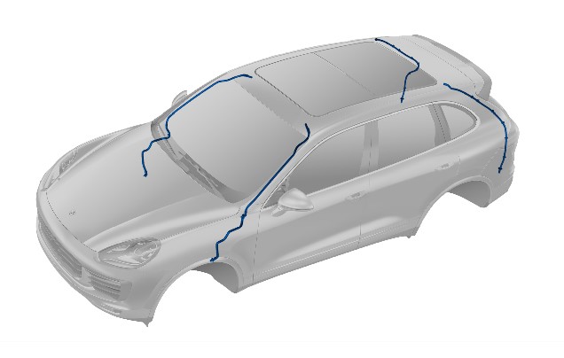 Представленный ниже обзор служит в качестве справки по местам установки водостоков сдвижного люка или складного верха кабриолета. Для наглядности соседние навесные компоненты в обзоре не отображены.