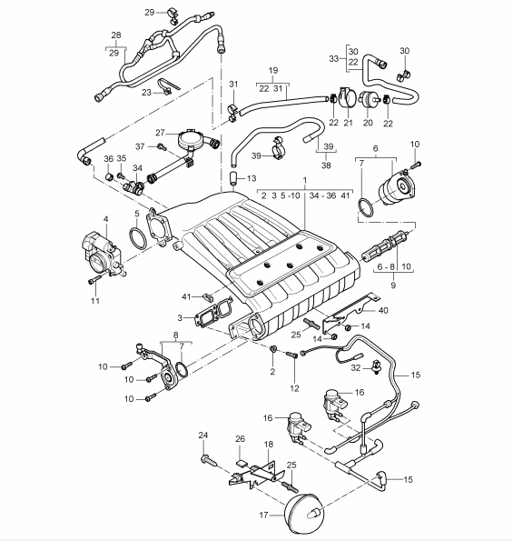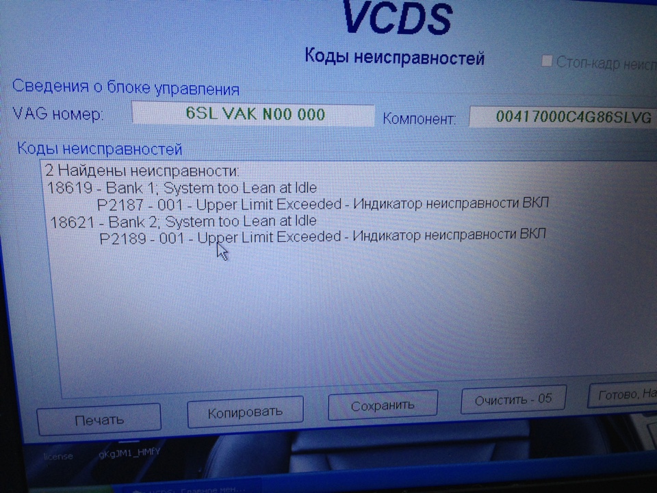 Подсос воздуха между термоанемометрическим расходомером воздуха и дроссельной заслонкой (например, трещина в шланге)