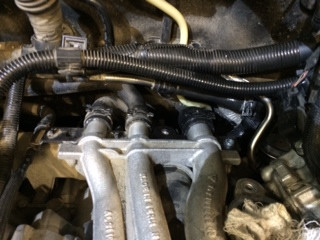 Побежал антифриз. но патрубки пластиковые поменяны на алюмишку еще несколько лет назад. решил разобраться. снял вход воздуха в цилиндры. оказалось что патрубок побежал тот, который между задней частью двигателя и панелью кузова. он треснул. на время решил отремонтировать, пока заказал новый.