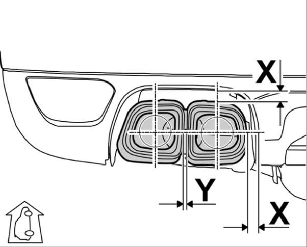 Y ТОЛЬКО Cayenne Turbo, минимальное расстояние между левой и правой спортивной выпускной трубой
