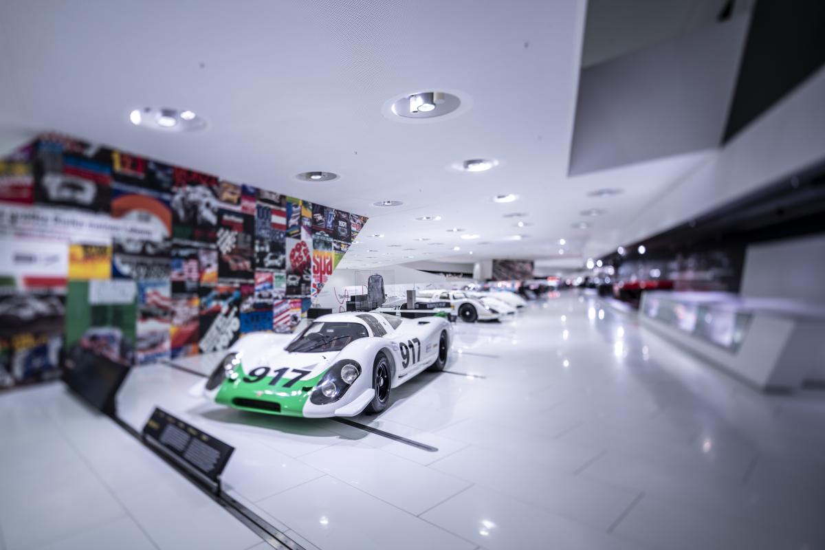 Porsche 917, спортивный автомобиль группы 4, был специально разработан для гонки 24 часа Ле-Мана и чемпионата мира среди марок. Автомобиль с порядковым номером «1» 1969 года выпуска был первым из всего 25 экземпляров, необходимых для омологации. 917-001 дал начало беспрецедентно успешной серии и поэтому является главным экспонатом на специальной выставке. Более года музейные механики, бывшие техники и инженеры из Цуффенхаузена и Вайссаха совместно со специалистами исторического архива Porsche AG, а также компаниями-партнерами работали над его реставрацией. И вот теперь впервые автомобиль демонстрируется в том состоянии, в котором он был представлен мировой общественности 12 марта 1969 года на автосалоне в Женеве.
