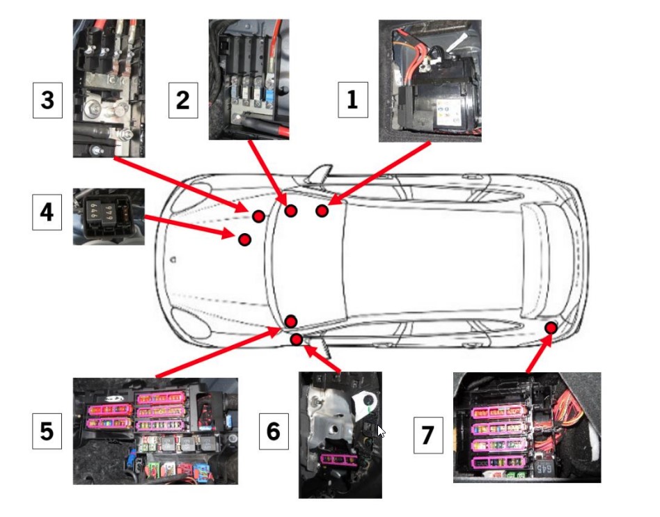 Блок главных предохранителей для центрального предохранителя находится непосредственно на АКБ в отсеке для АКБ в пространстве для ног переднего пассажира.