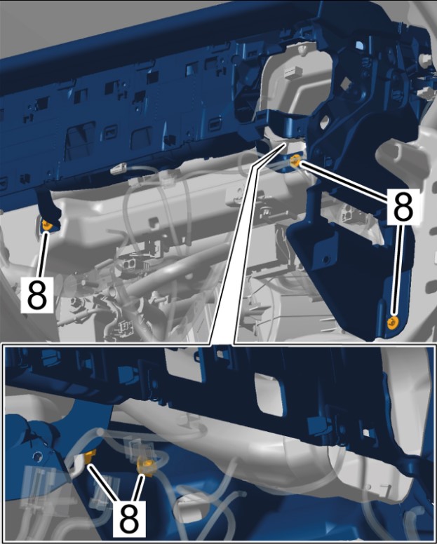 Отключить АКБ и изолировать плоский провод массы так, чтобы был исключен контакт с массой.