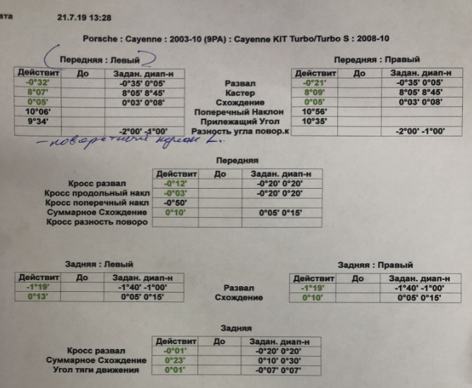 Чтобы точно что-то говорить или советовать нужно понять на сколько корректно были проведены подготовительные операции к замеру углов установки колес и на сколько опытный механик https://forum.cayservice.ru/showthre...A3%D0%A3%D0%9A