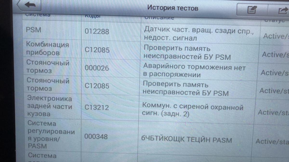 Стояночный тормоз С12085 Проверить память неисправностей БУ PSM