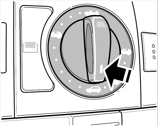 2. Поворотный переключатель удерживать нажатым в этом положении -стрелка- . Крыша начнет закрываться прим. через 5 с. Удерживать поворотный переключатель нажатым до полного закрытия солнцезащитной шторки и крыши. При этом сначала закрывается солнцезащитная шторка, затем подводится крышка модуля крыши, ненадолго открывается и снова закрывается. Задняя крышка модуля крыши закрывается только тогда, когда отпущен поворотный переключатель -стрелка- .