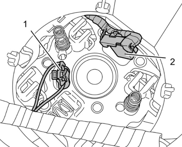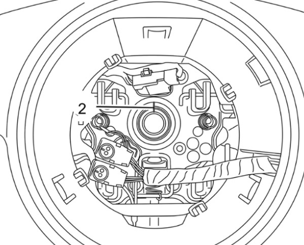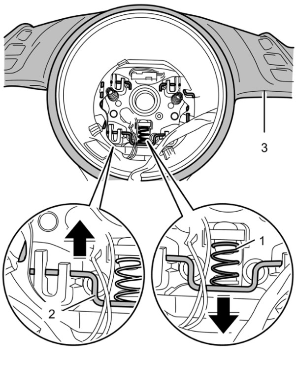 Перед снятием рулевого колеса разблокировать и отсоединить разъемы кабеля обогрева рулевого колеса и подушки безопасности.