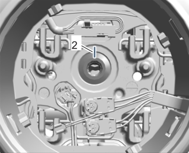 2 При установке рулевого колеса необходимо следить за тем, чтобы совпадала метка -2- между рулевым колесом и рулевой колонкой.