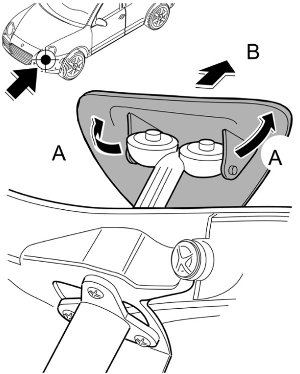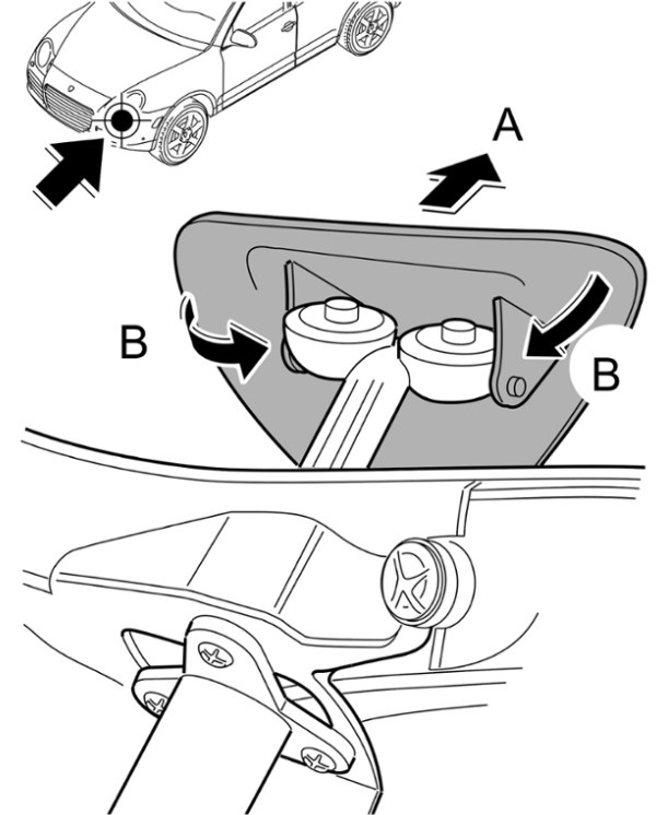 1 Выдавить головку форсунки с внутренней стороны -стрелка B-и удерживать.