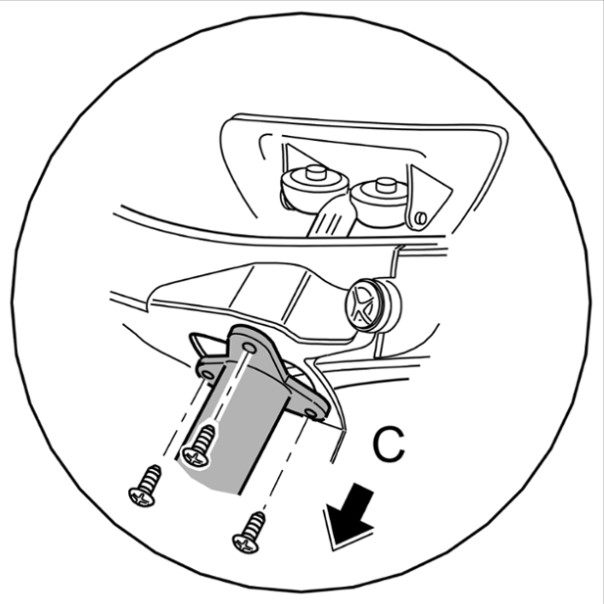4 Выкрутить три верхних крепежных винта -стрелки C-.