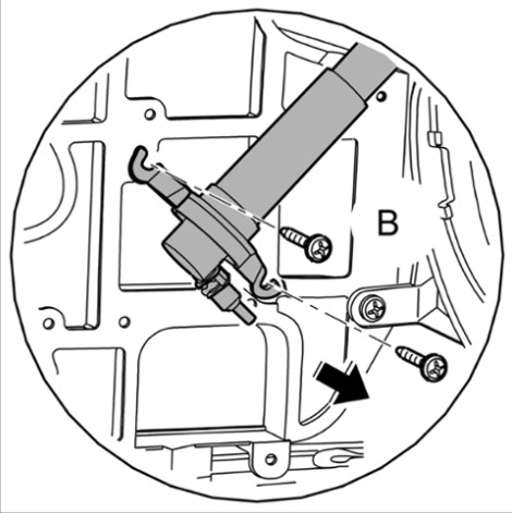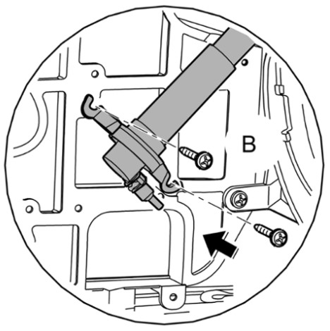 2 Затянуть нижние крепежные винты -стрелки B-. Момент затяжки 1.5 Nm