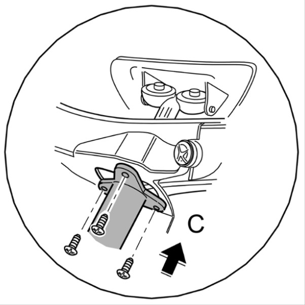 3 Затянуть 3 верхних крепежных винта -стрелки C- . Момент затяжки 1,5 Nm