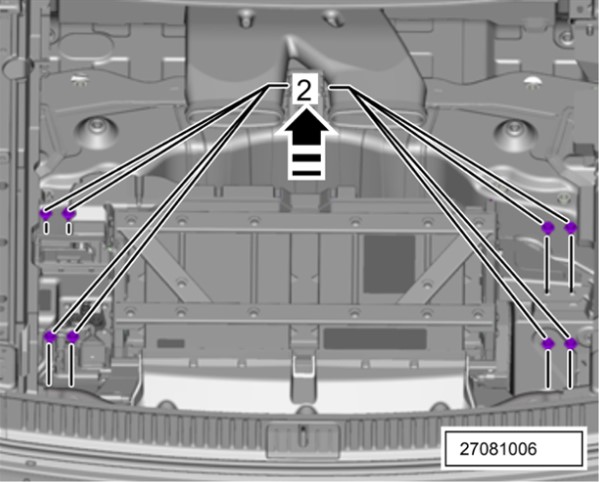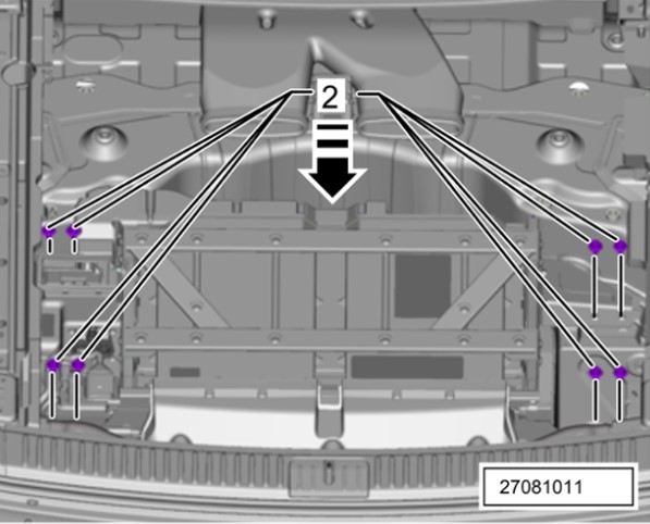 3 Привернуть высоковольтную АКБ с помощью восьми крепежных винтов -2-. Момент затяжки 23 Nm.