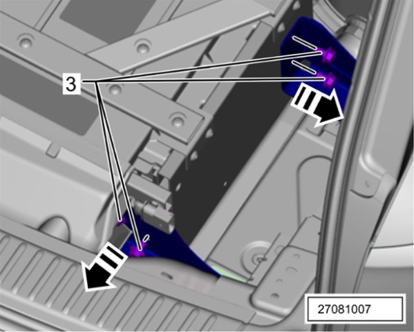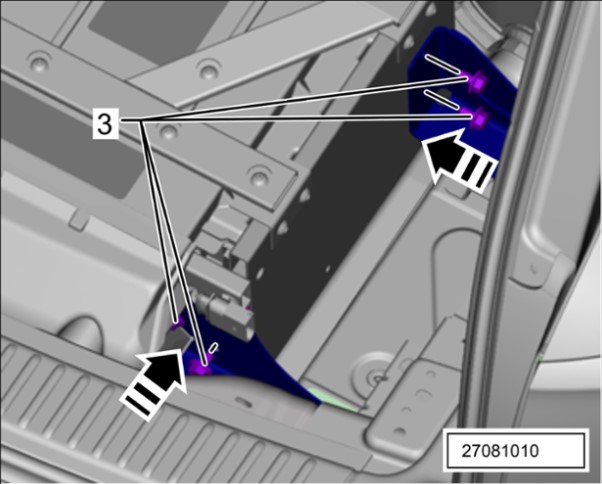 2 Привинтить оба правых крепежных уголка на высоковольтной АКБ с помощью четырех крепежных винтов -3-. Момент затяжки 23 Nm.