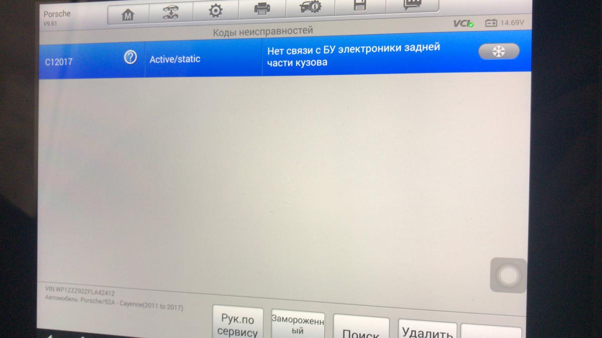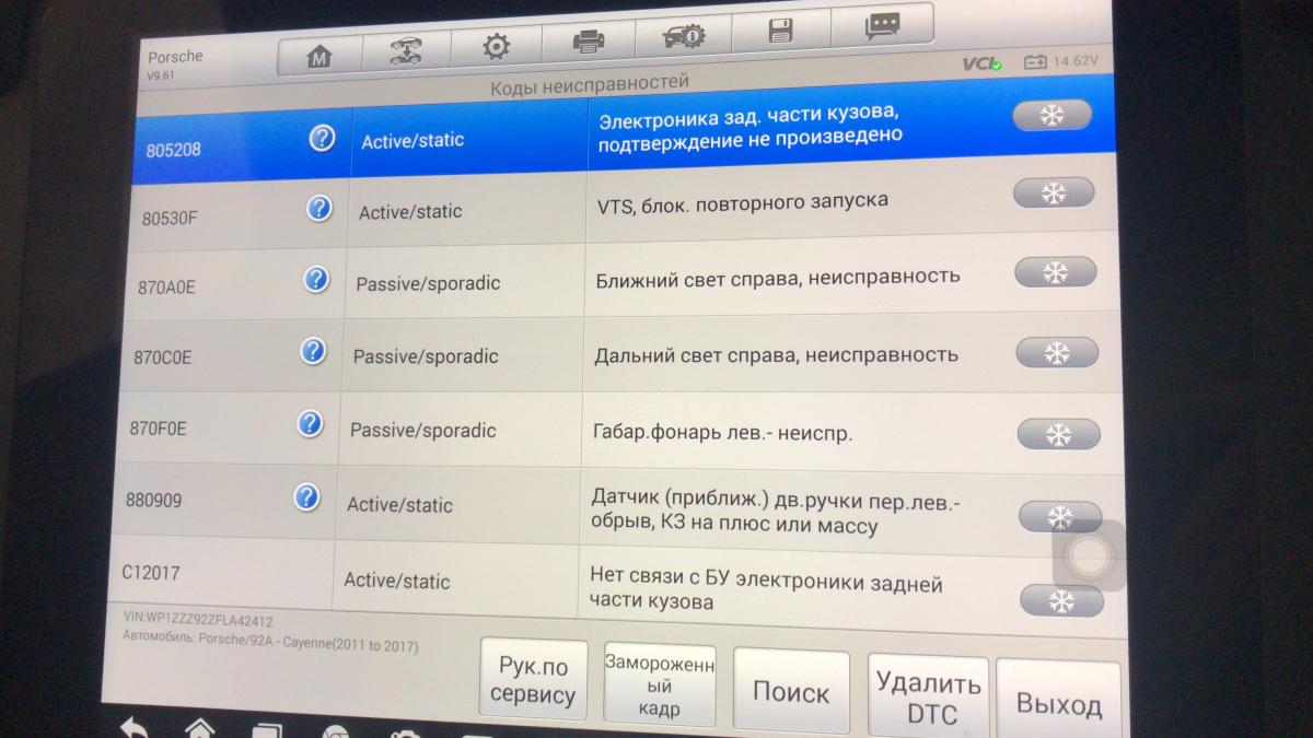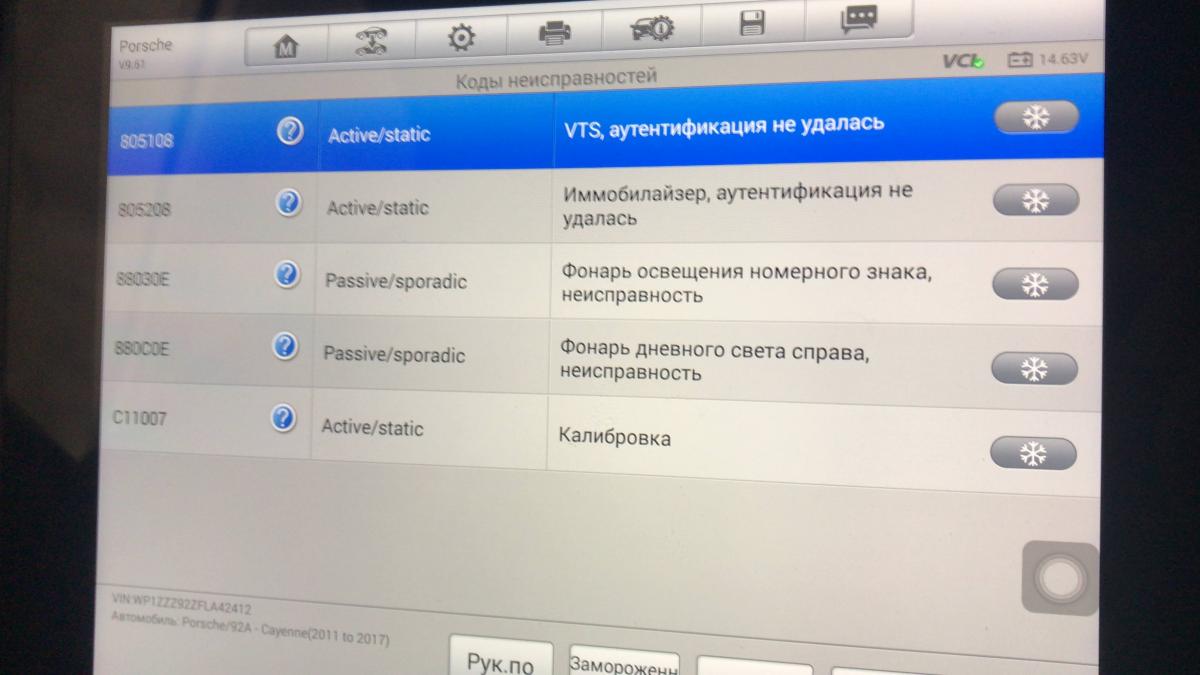 Здравствуйте. Помогите разобраться с неисправностями. Имеется Porsche Cayenne 2011 год WP1ZZZ92ZCLA50522. После небольших кузовных работ загорелись ошибки, перестала работать часть диодов в правой фаре. С фарой разобрались, блок сгнил. НО! По вину должны стоять ксеноновые фары, кто-то уже туда установил LED. В блоке подушек 17 ошибок, видимо авто после аварии, они не сбрасываются. Однако по подушкам на панели ничего не горит. Далее в машине когда делаешь диагностику несколько вин. Родной вроде только в панели приборов. В моторном и шлюзе другой, в блоке задней и передней электроники третий. Один ключ зажигания постоянно в замке не вынимается, но машина заводится и запирается другим ключом. И главное с этой всей солянкой машина ездила без ошибок, до кузовного ремонта. Вопрос как запрограммировать блок правой фары после замены?? Будет ли все это работать с такой солянкой???С какого блока неисправность на панели в виде молнии?? Больше всего смущает, что авто как то ездило с данными ошибками. Из оборудования только Autel Maxipro908. Заранее спасибо